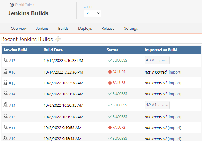 You can quickly compare changes between builds and navigate directly to individual commits or file changes.