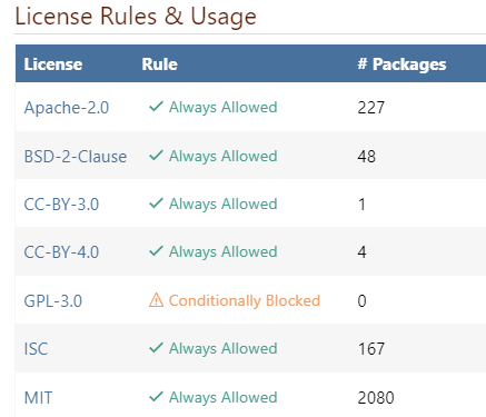 Sonatype spreads license management across multiple tools, Firewall for blocking and Lifecycle for policy enforcement, which creates a more complex, multi-step workflow. This structure can make it harder for teams to maintain consistency and increases operational overhead.