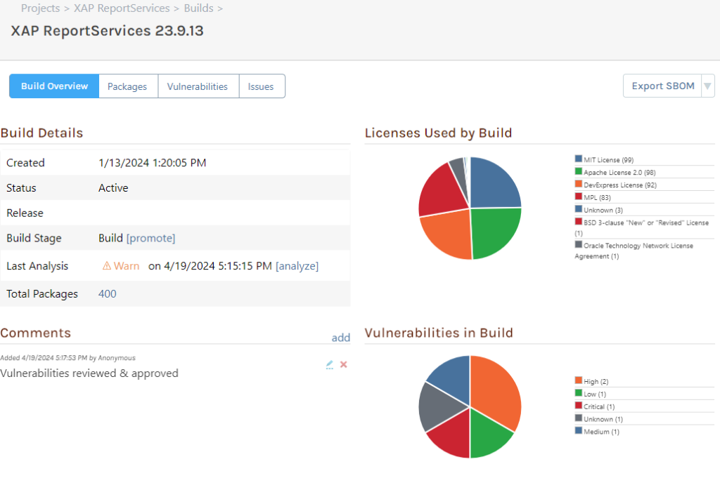 Sonatype handles SBOMs through a separate SBOM Manager, which requires extra setup and manual updates. This manual process can lead to incomplete or outdated SBOMs and increases the chance of oversight and fatigue for teams.